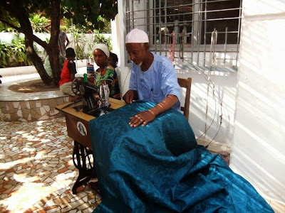 Next some dear ladies sat in the blazing sun with a little bucket of boiling water and removed any excess wax and our mistakes. |